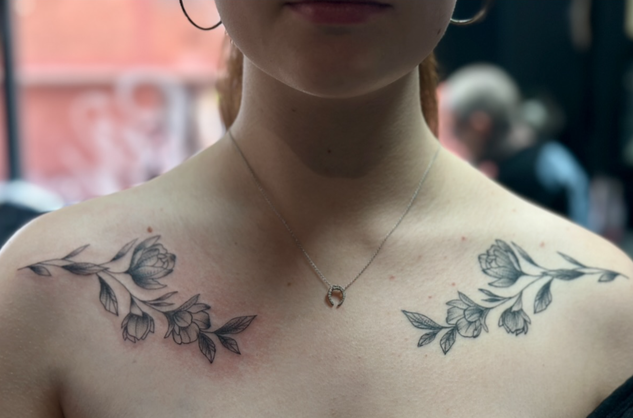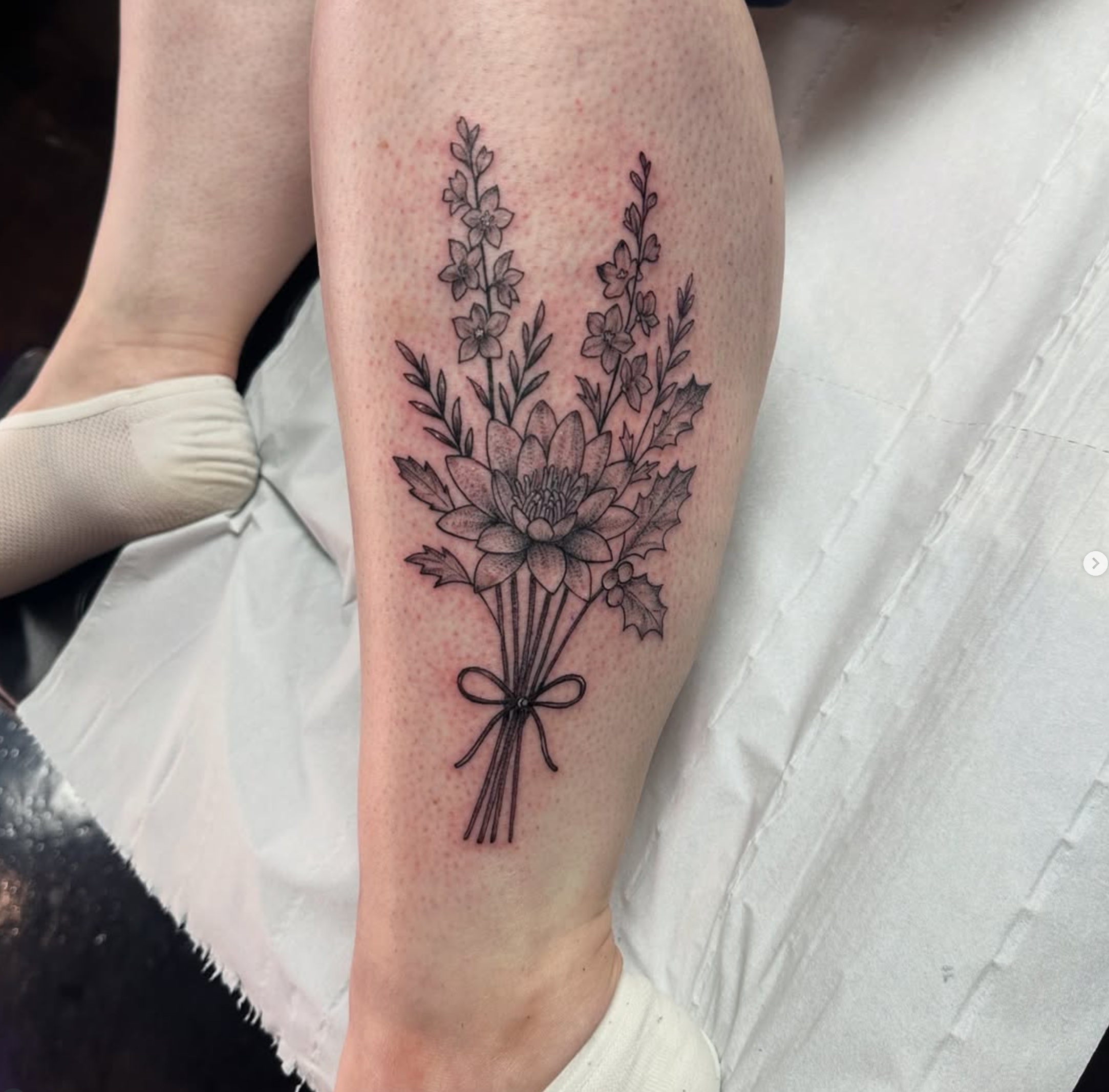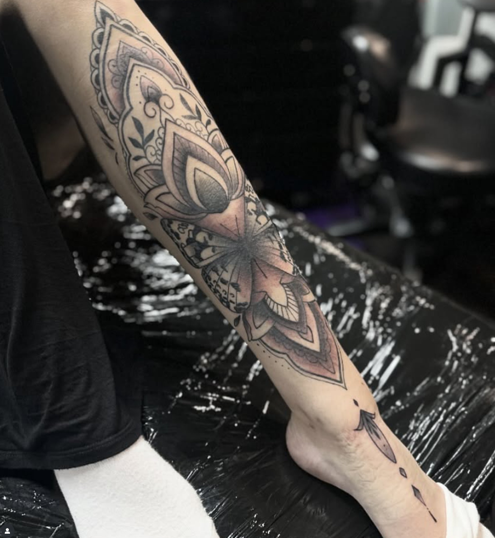 Bee loves to focus on floral and blackwork designs, she also enjoys larger pieces involving dotwork.